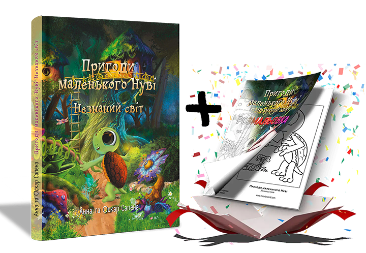 Книга "Пригоди маленького Нуві. Незнаний Світ" + розмальовка у подарунок